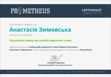 - Психологія стресу та способи боротьби з ним, наданий викладачем Київського університету імені Бориса Грінченка Наталією Стефаненко