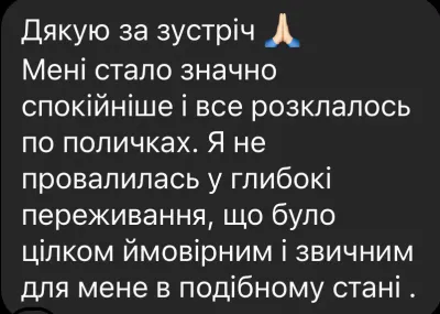 Особисті дані та вся інформація, обговорена під час сесій, є конфіденційними. Зустрічі проводяться за узгодженим графіком, який формується індивідуально в залежності від запиту.
