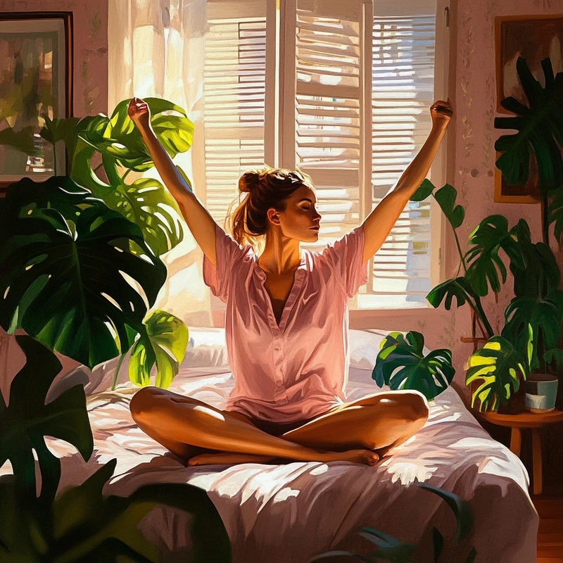 Почніть день із глибоких дихальних вправ (5 хвилин). Вдихайте глибоко через ніс, затримайте дихання на кілька секунд, потім видихайте через рот. Це допомагає зменшити стрес і заспокоїти нервову систему.